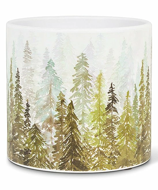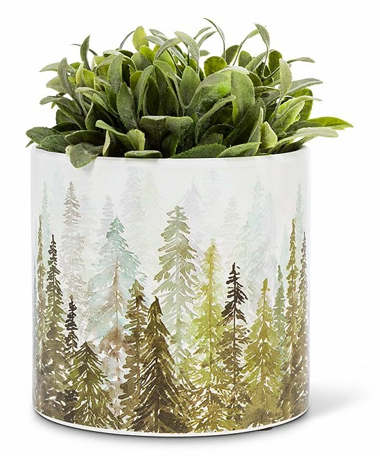 Give your greenery a charming touch with this ceramic planter featuring a foggy forest design.