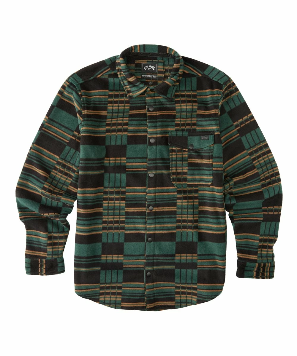 Flannel button-up featuring a water-repellent coating and cozy fleece finish.