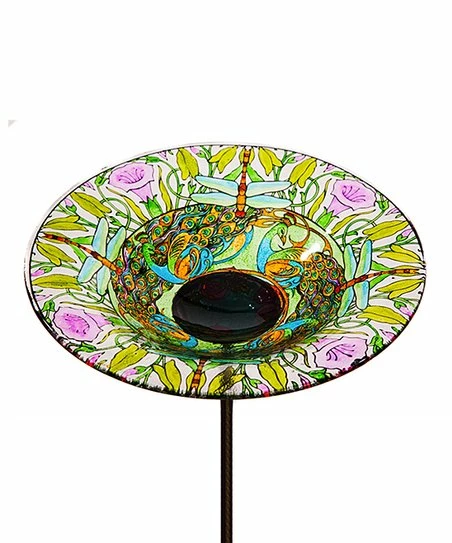 Offer your feathered friends a vivid place to rest their wings courtesy of this colorful birdbath.