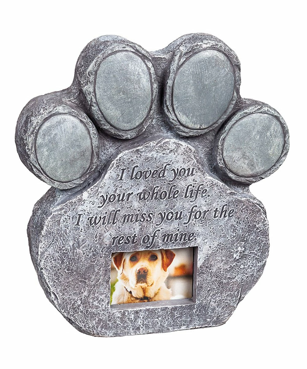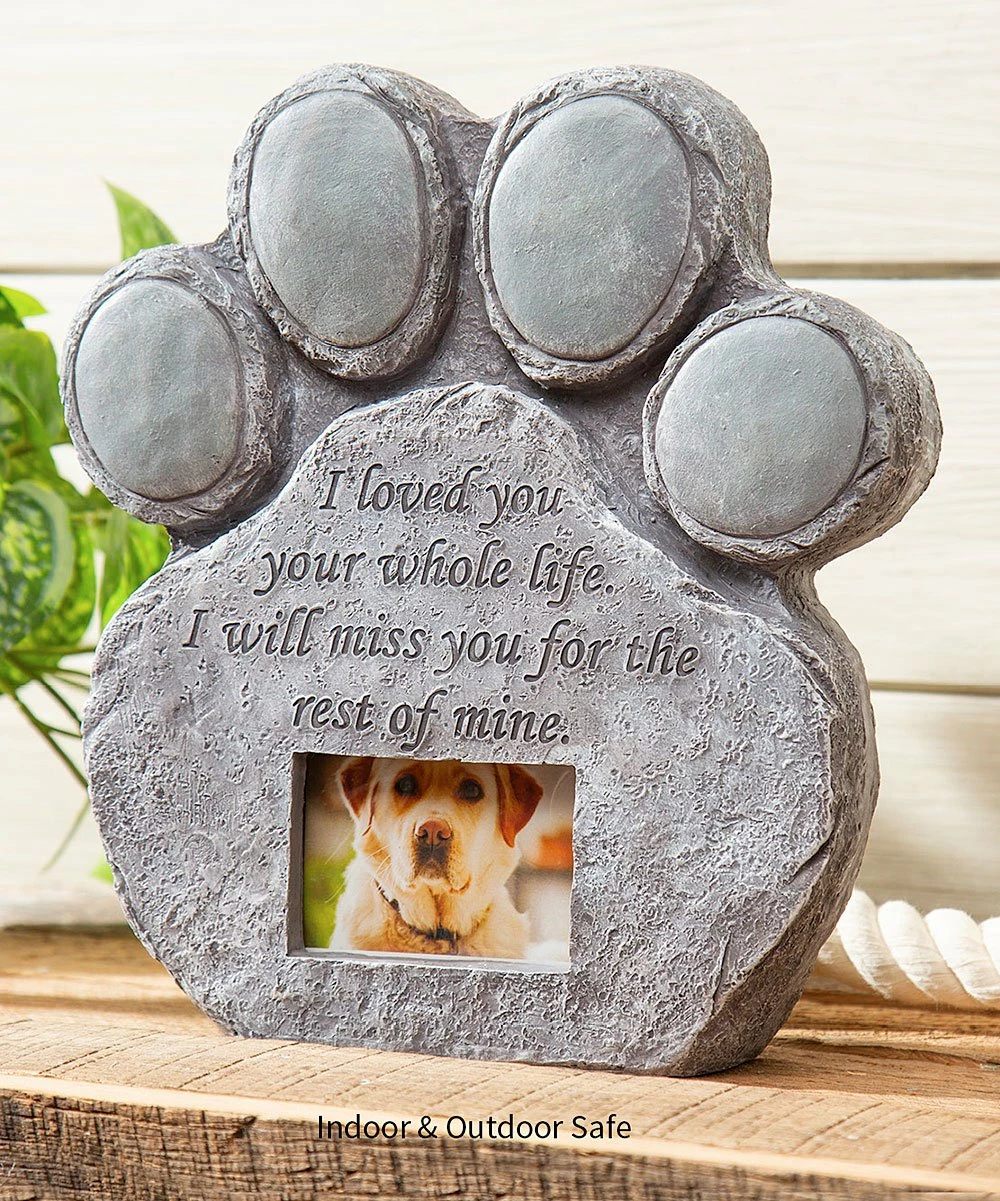 Keep your furry friend in your memory with this resin memorial stone with photo frame.