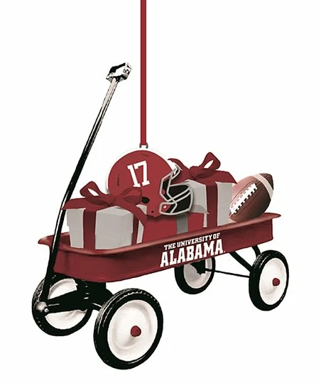Bring vintage vibes to your holiday décor with this team-themed wagon ornament that features a replica helmet and ball.