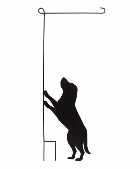This outdoor stake has a metal dog silhouette standing up along the pole. Use it to hang decorative flags for gardens, entrances and patio displays.