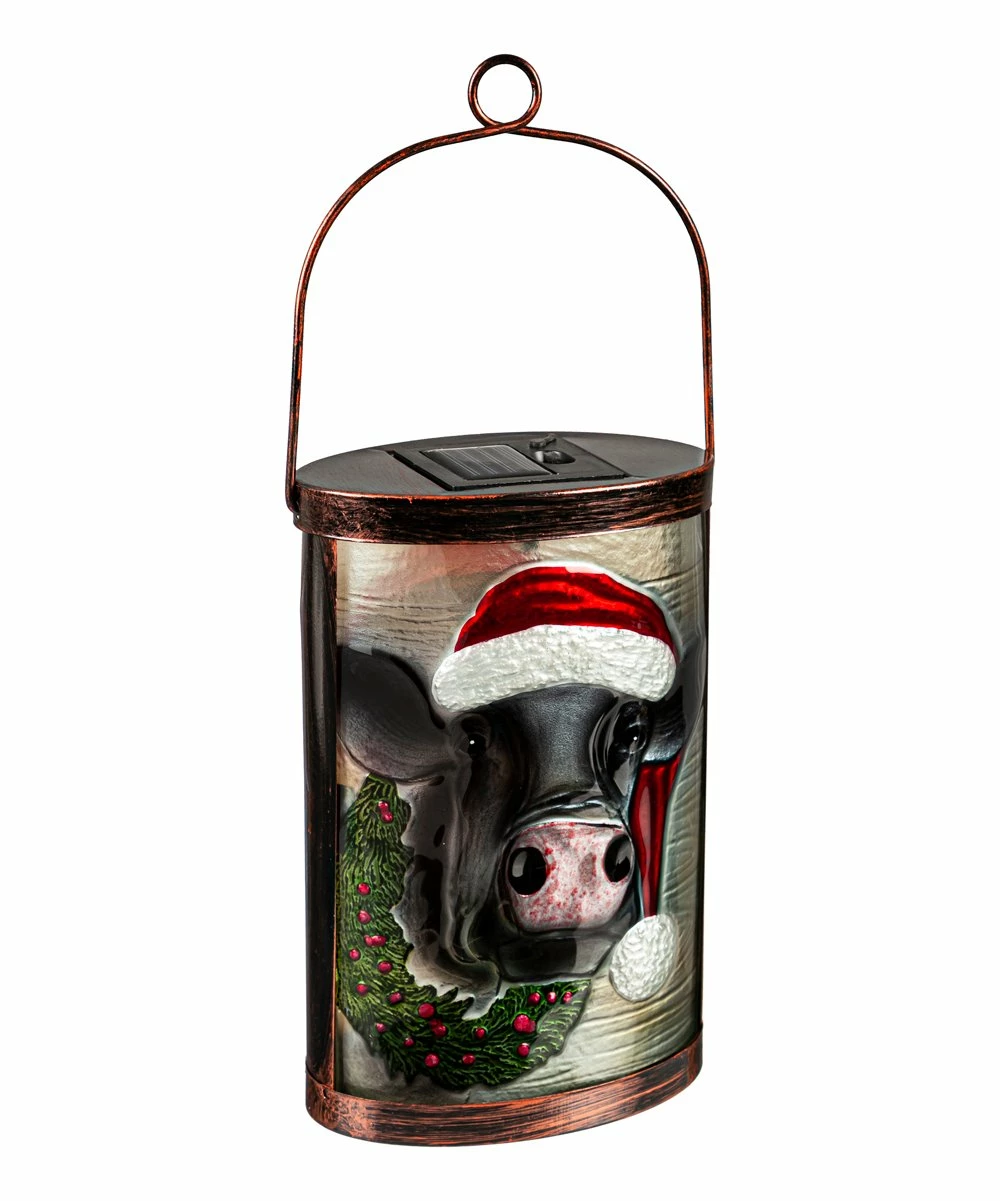 Bring on the festive feels with this solar glass lantern featuring a delightful holiday motif.