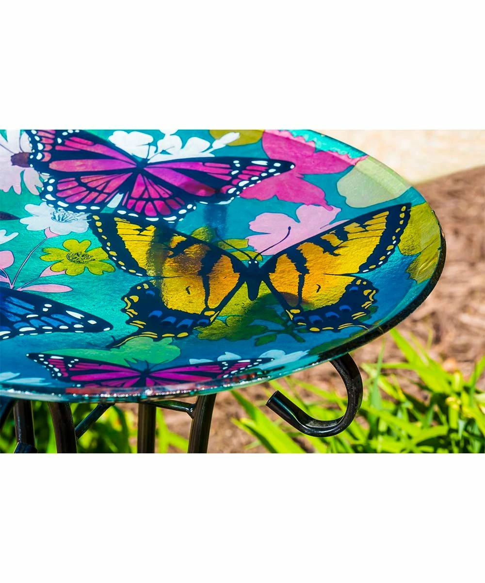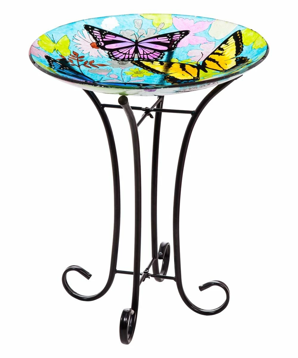 Give your feathered friends a place to bathe and drink with this attractive glass birdbath and stand.