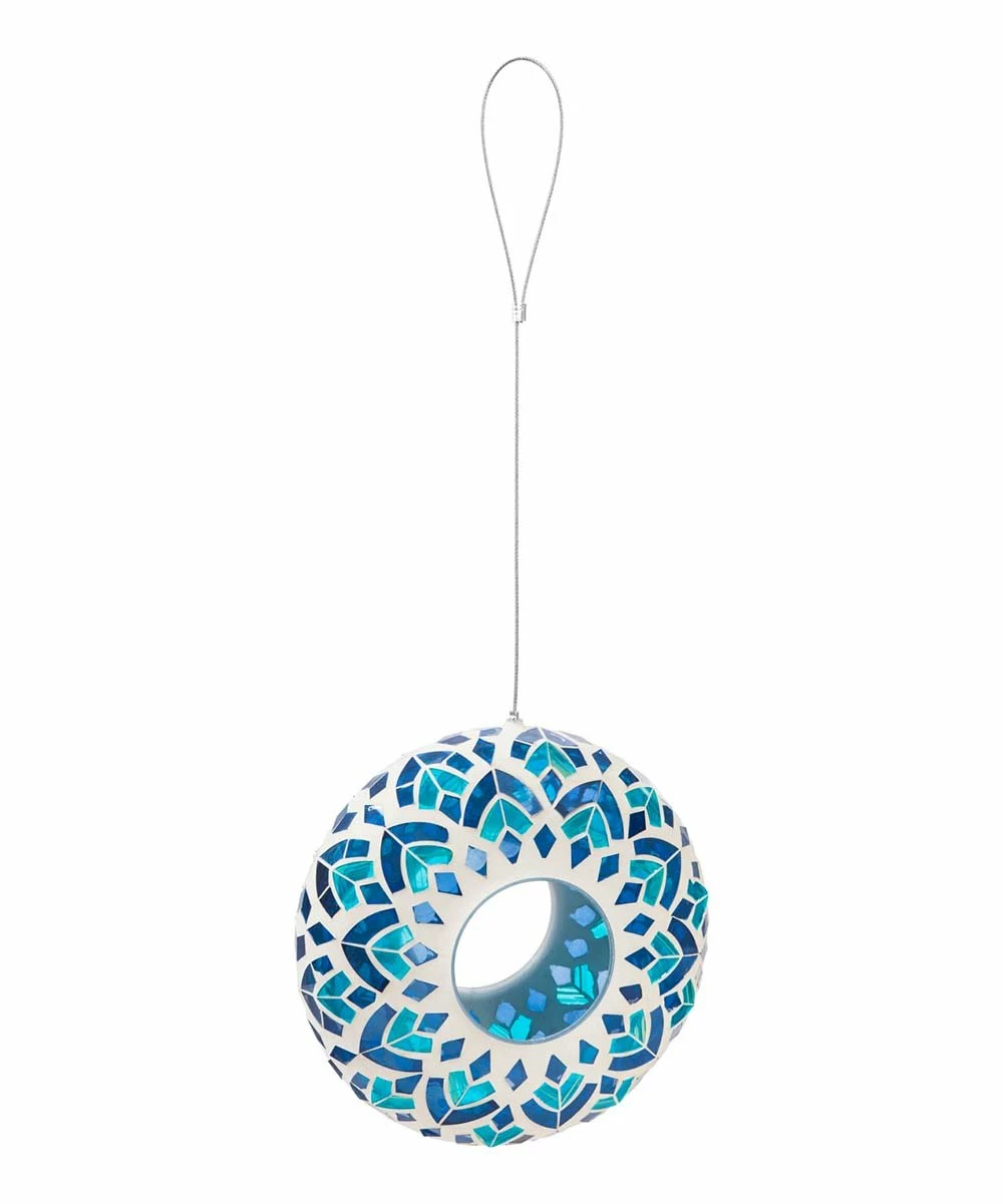 Give your feathered friends their own special hangout with this bird feeder that features an ornate mosaic glass design.