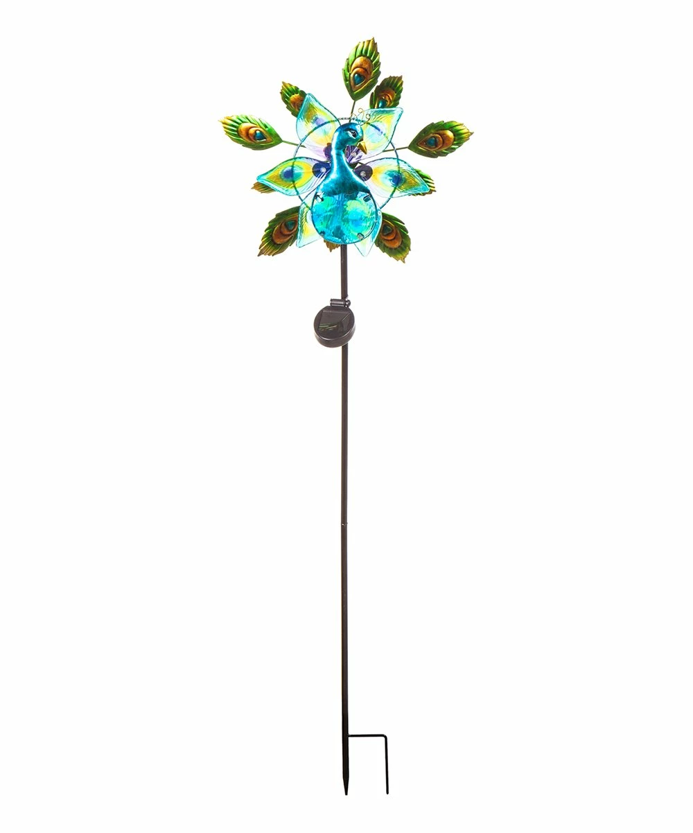 Light up your outdoor space with this colorful solar-powered wind spinner stake that features a light-up design and powder-coated metal with a weather-resistant finish.