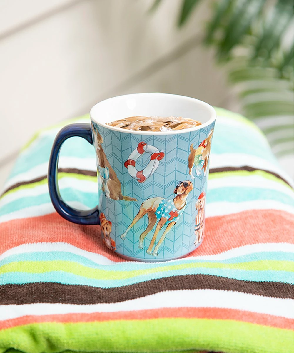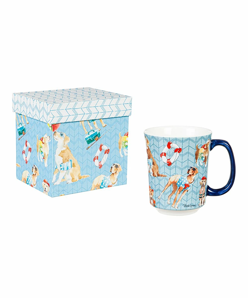 - Includes one blue and white dogs mug and one blue and white dogs box (two pieces total)