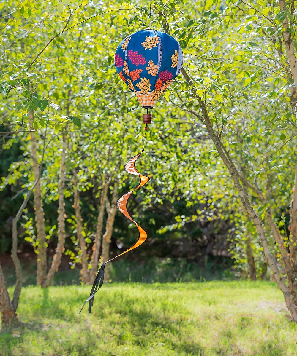 Hang an outdoor-safe burlap balloon spinner for porch, window or patio dΓ©cor. Colorful and visually engaging for a stylish touch.