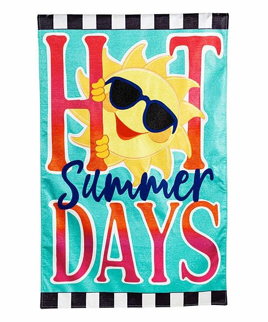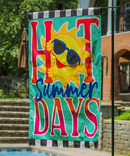 - Full graphic text: Hot summer days (the letter o is represented by a sun).