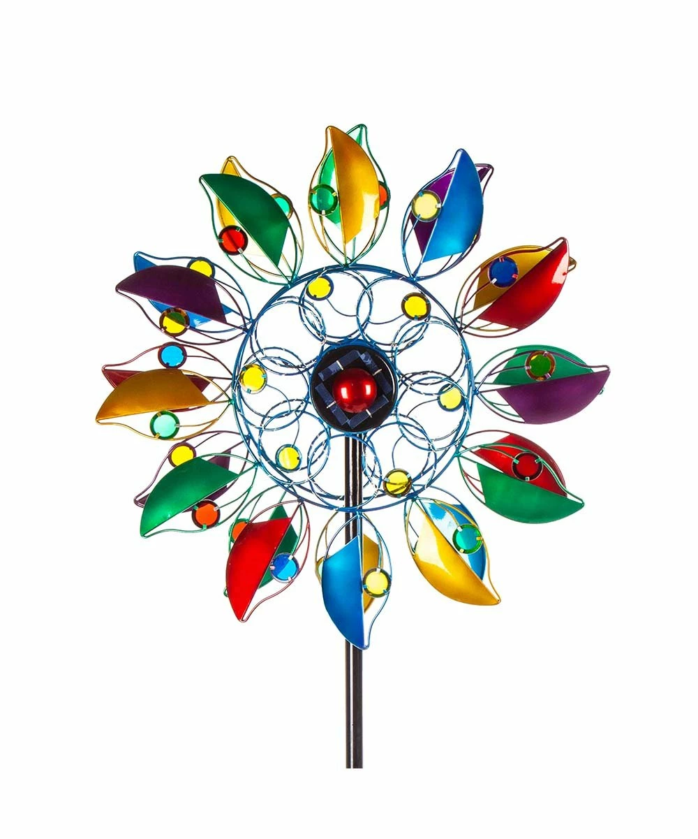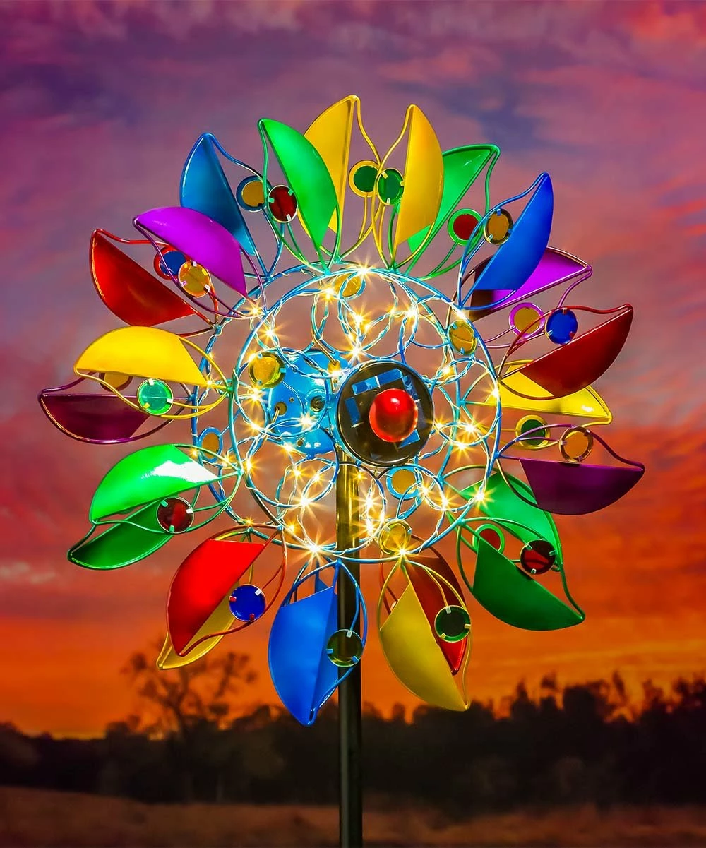 Inspire your outdoor dΓ©cor with this whimsical garden stake that boasts a solar-powered light-up design, finished with vibrant spinning panels that come to life with every passing breeze.