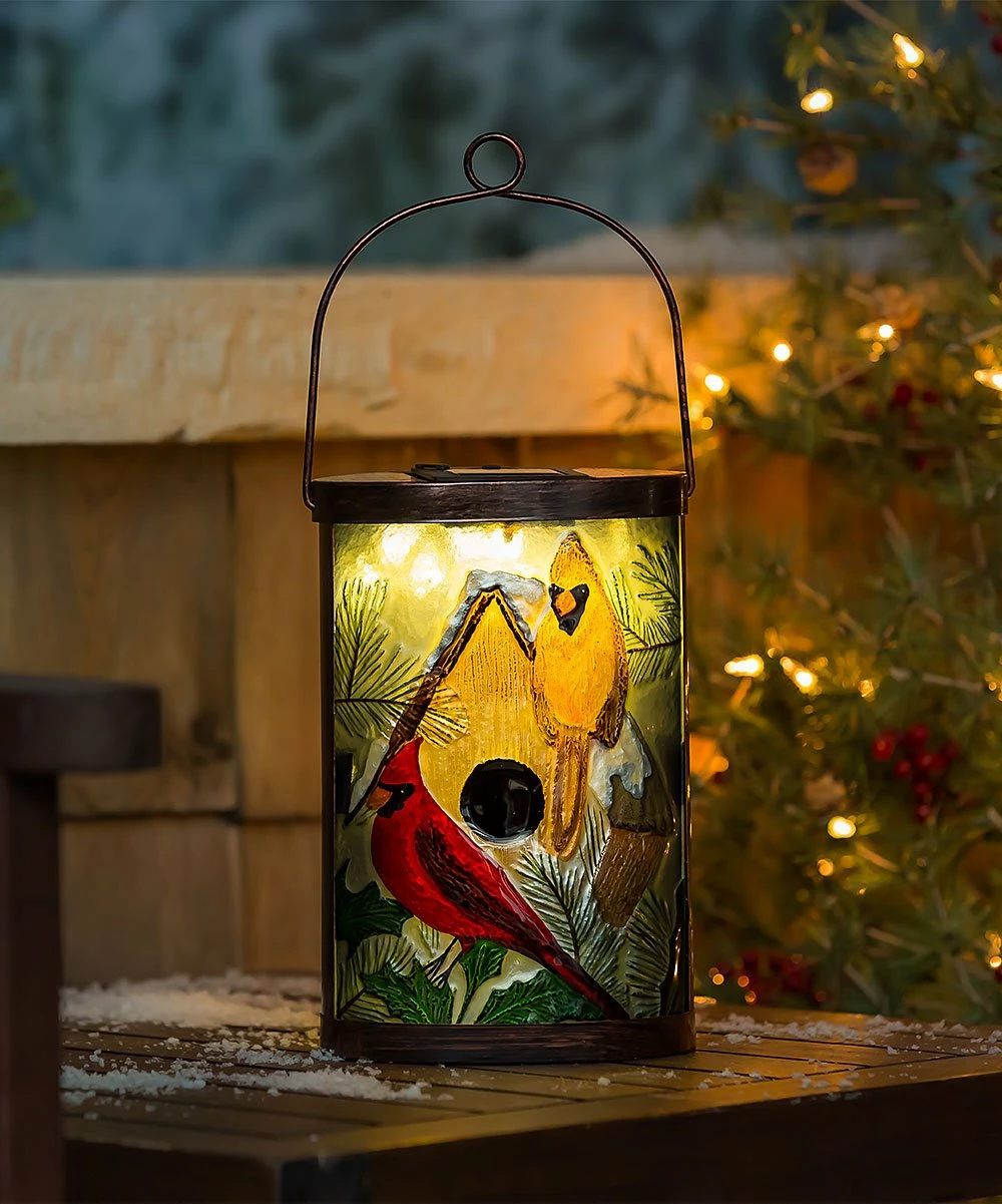 Featuring a winter cardinal design, this solar lantern helps bring out your seasonal spirit.