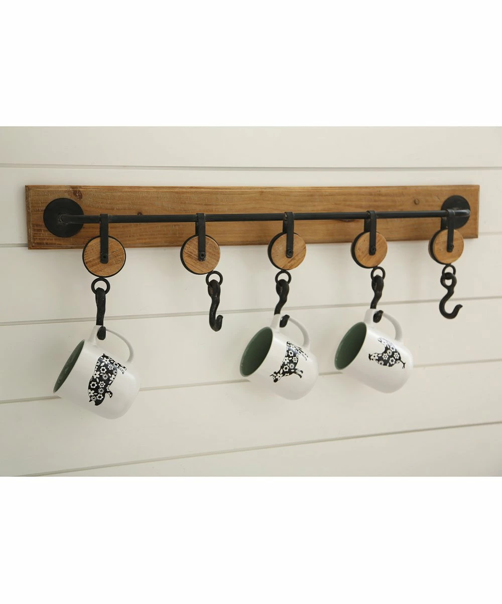 Add handy extra storage to your space with these pulley hooks boasting a rustic wood and metal design.