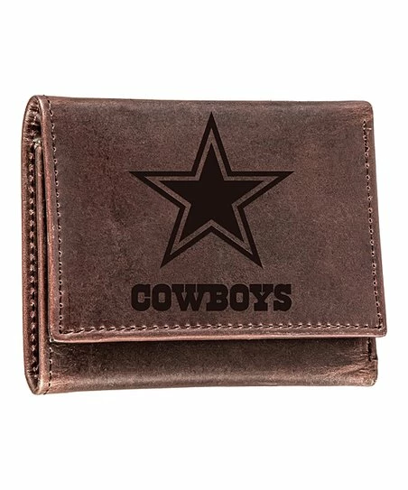 Show your team spirit wherever you go with this leather tri-fold wallet featuring an embossed logo and multiple interior compartments.