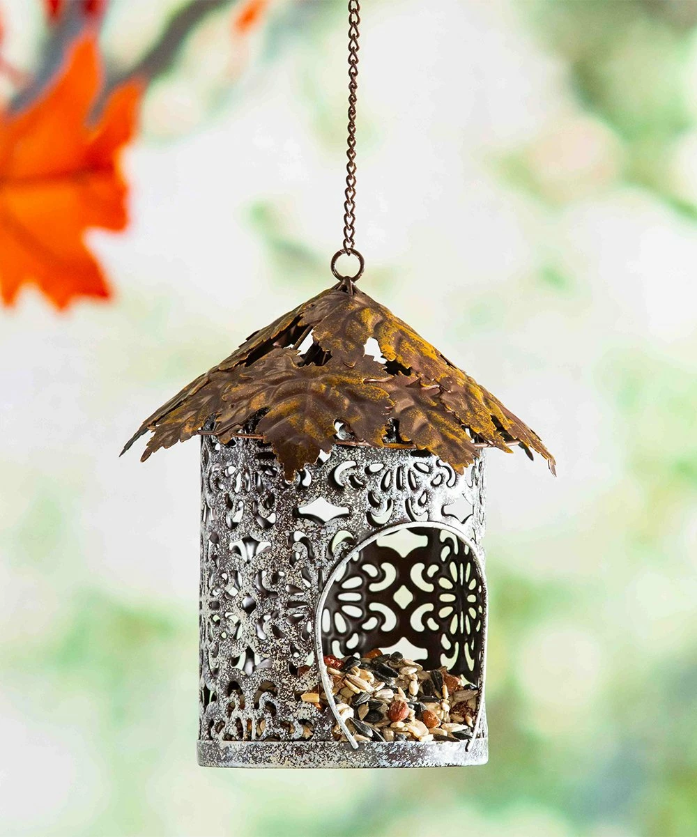 Welcome forest friends with this metal bird feeder in a delightful design.