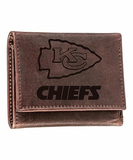 Show your team spirit wherever you go with this leather tri-fold wallet featuring an embossed logo and multiple interior compartments.