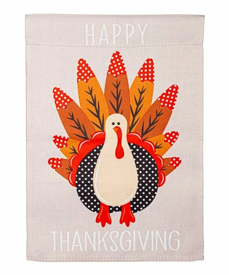Display this outdoor flag for autumn appeal with its turkey design made of various patterns.