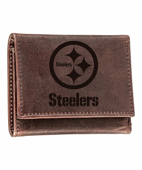 Show your team spirit wherever you go with this leather tri-fold wallet featuring an embossed logo and multiple interior compartments.