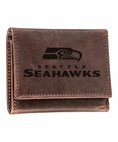 Show your team spirit wherever you go with this leather tri-fold wallet featuring an embossed logo and multiple interior compartments.