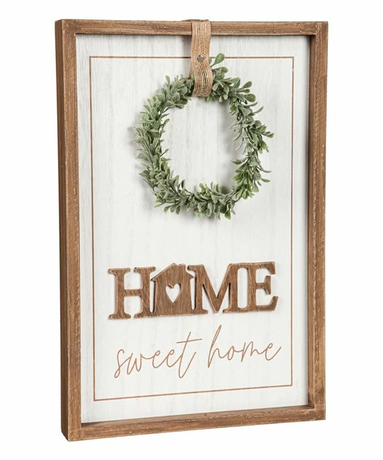 Bring a heartfelt feel to your interior with this wood wall sign complete with an artificial wreath decoration.