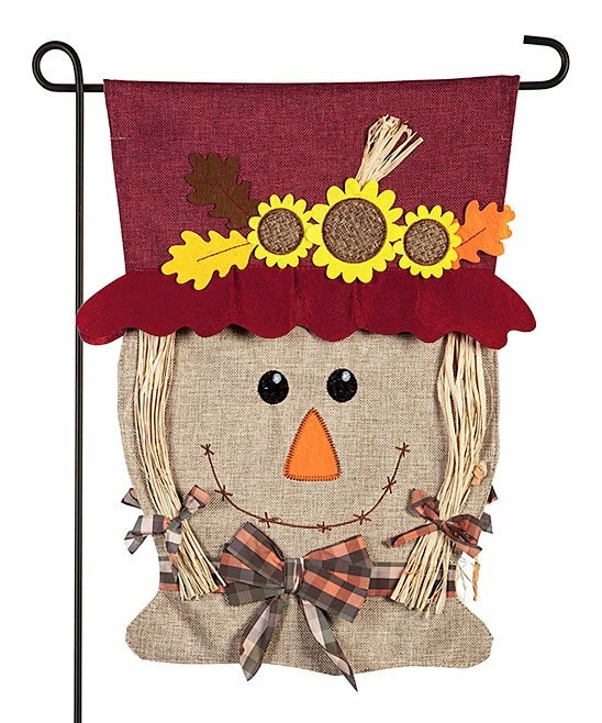Show your love for the harvest season by placing this festive burlap flag proudly on display in your front yard or garden. Textural accents finish it with charm.