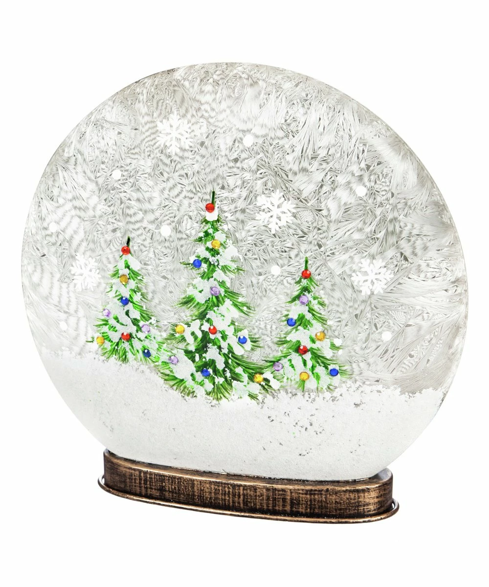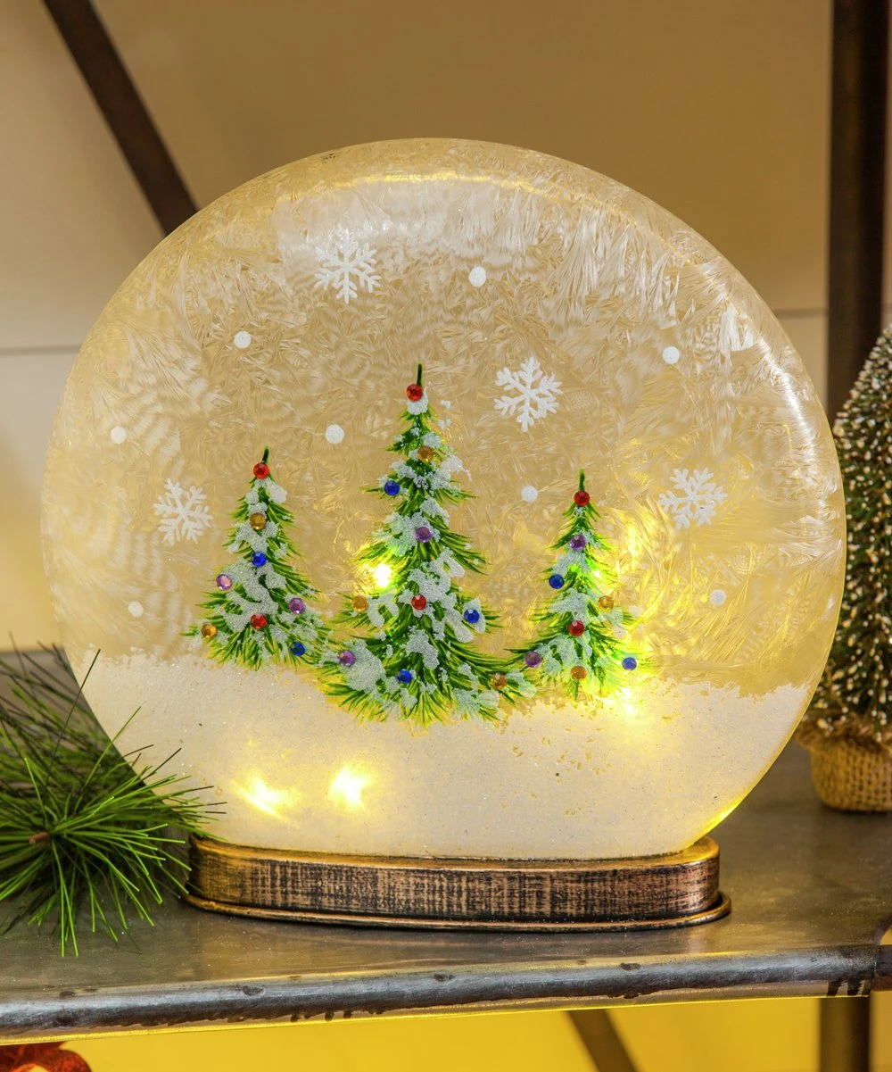 Bring a dash of natural charm into your living space with this light-up snow globe that is filled with pine trees.