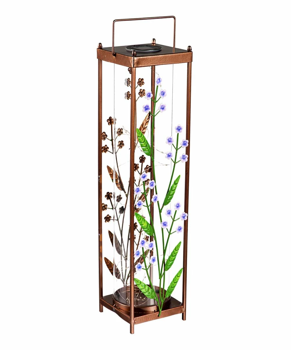 Add a glowing addition to your backyard with this lantern featuring a solar powered light and a beautiful wildflower design.