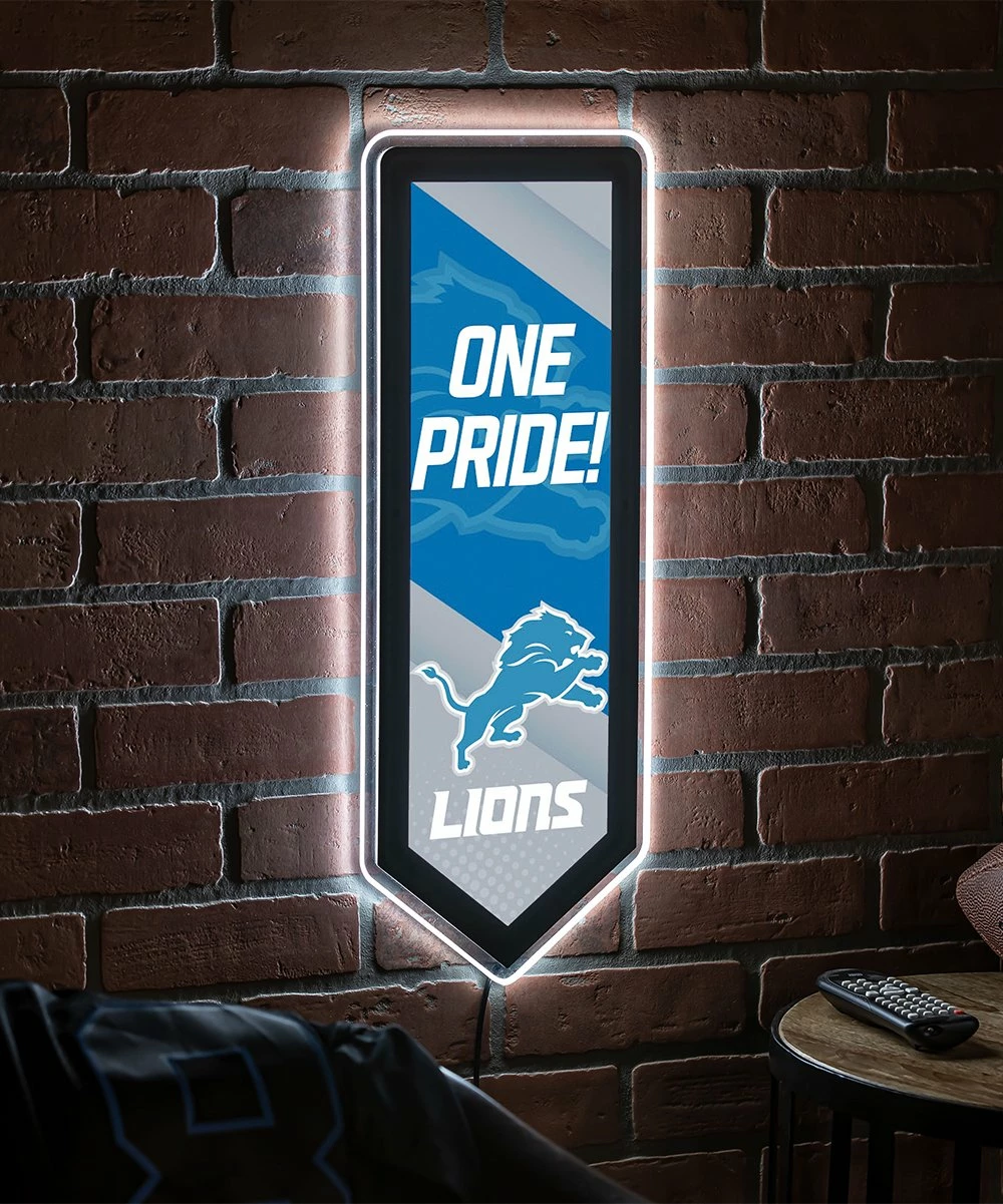 Let your team pride fly with this pennant light-up wall décor featuring full-edge lighting and fully backlighted faceplate.