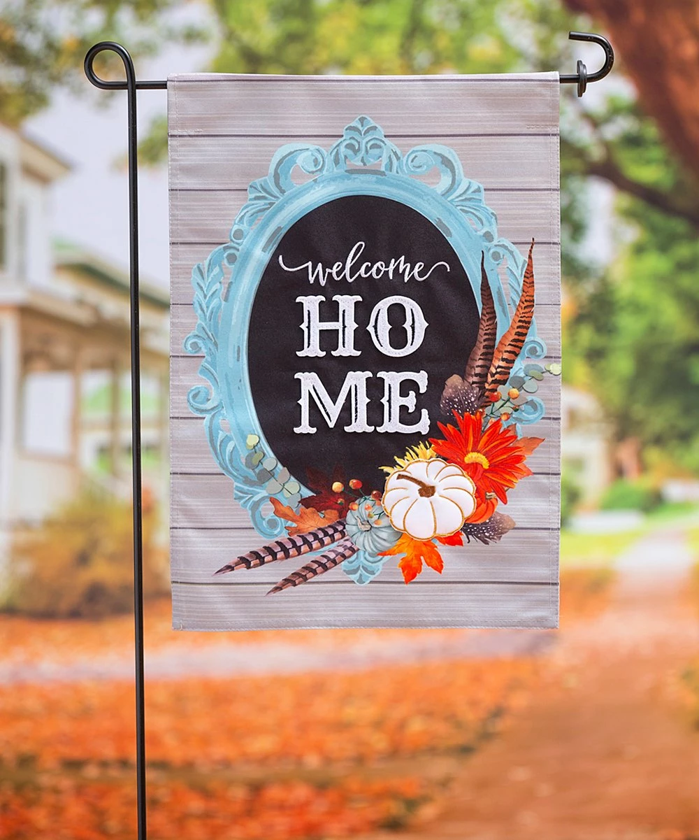 Greet guests and bring a pop of color to your garden when you hang this double-sided outdoor flag on your porch.