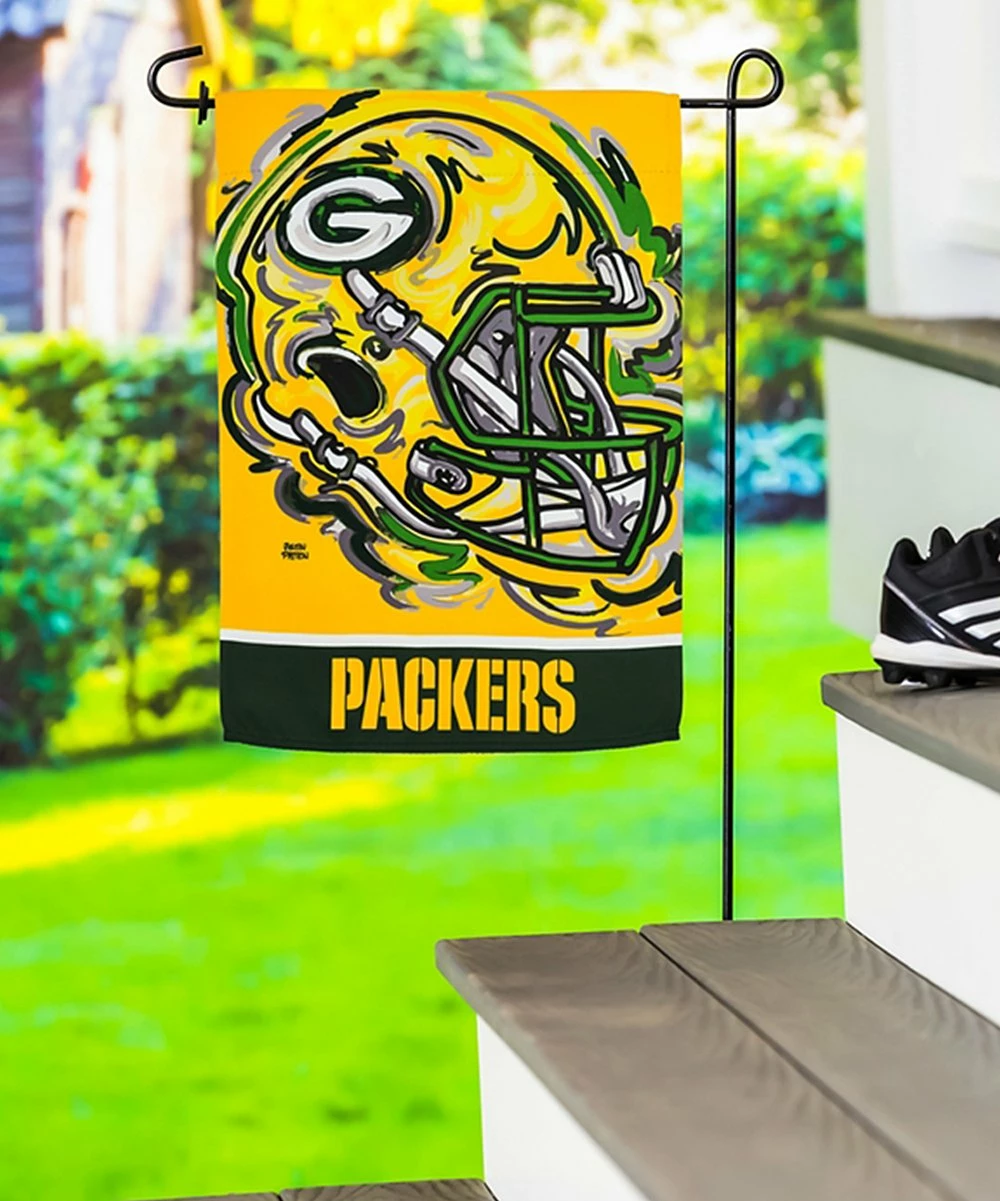 Declare your NFL superfan status by hanging this outdoor flag that showcases an artsy graphic and bold wordmark.