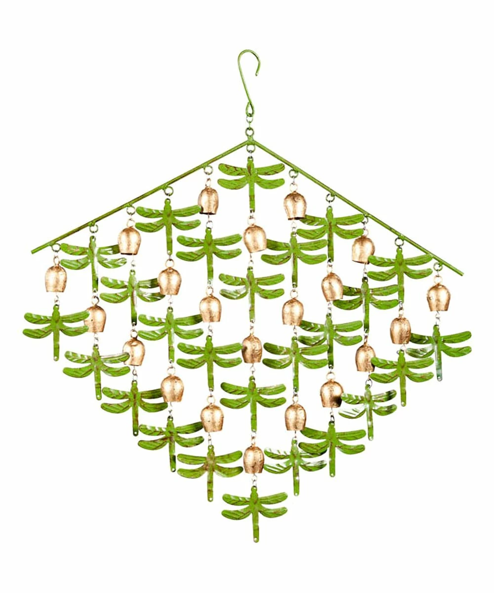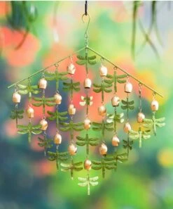 Elevate your garden with this wind chime adorned with whimsical dragonfly accents.