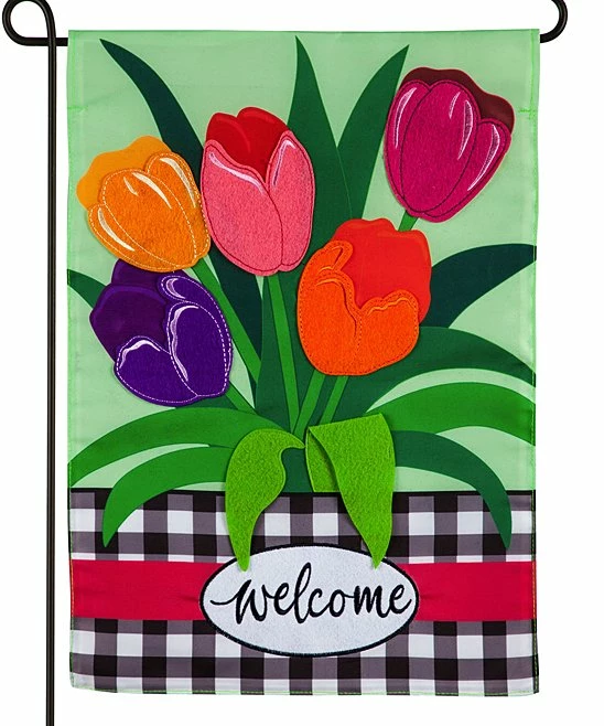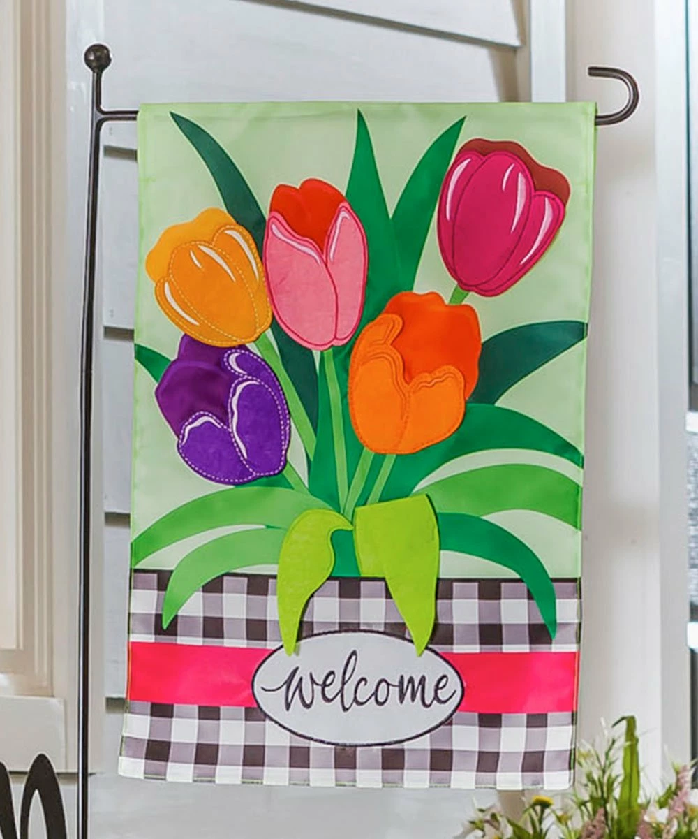 Give your porch or patio a seasonal upgrade with this appliquΓ© flag featuring a colorful illustration to greet your guests.