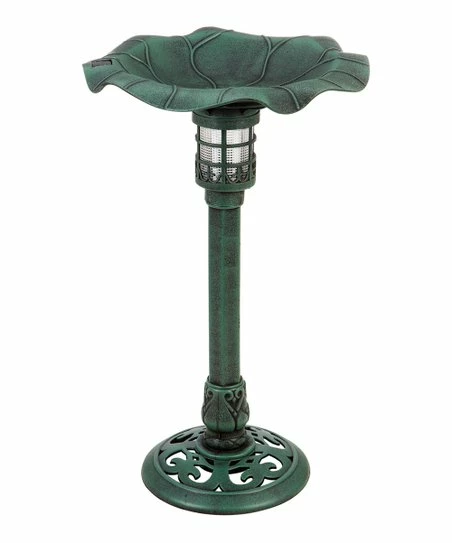 Charmingly complement your outdoor aesthetic with this bird bath, boasting an artful lily pad design. Its built-in light charges during the day so it can light up at night.