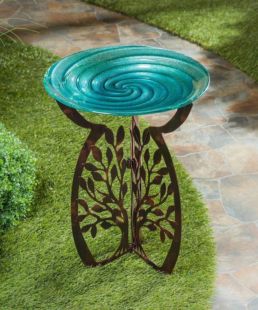 Offer feathered friends a perfect perch with this bird bath that’s supported by an artfully crafted tree of life base.