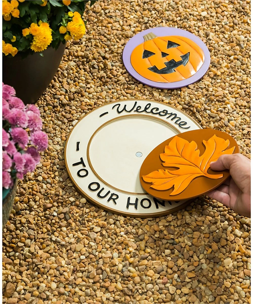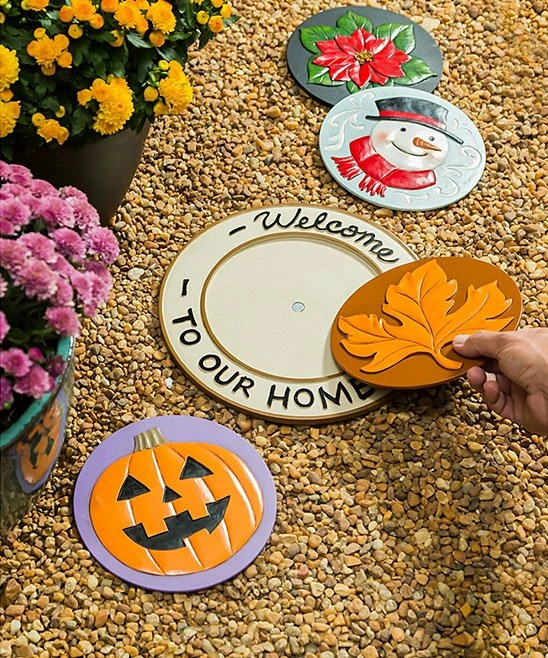 Lend a festive flourish to your yard with this welcoming garden stone that features four interchangeable icons to suit the season.
