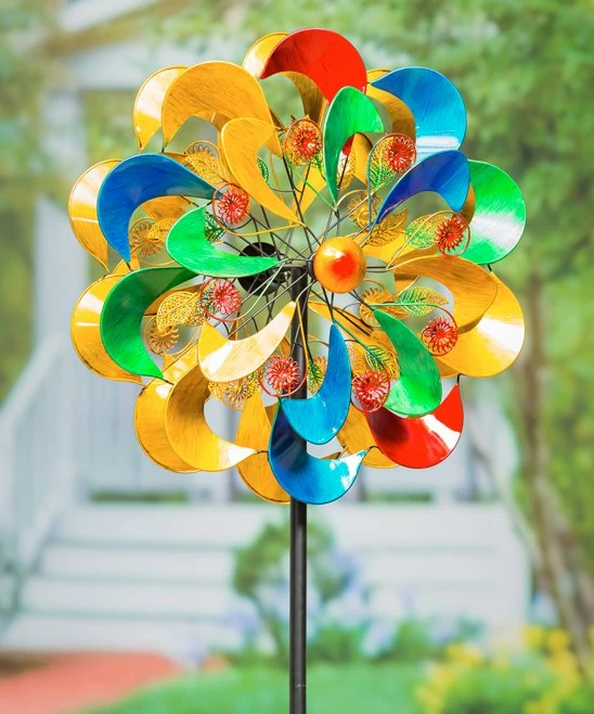 Bring new life to your garden with this floral wind spinner featuring multi-colored panels and a weather-resistant finish.