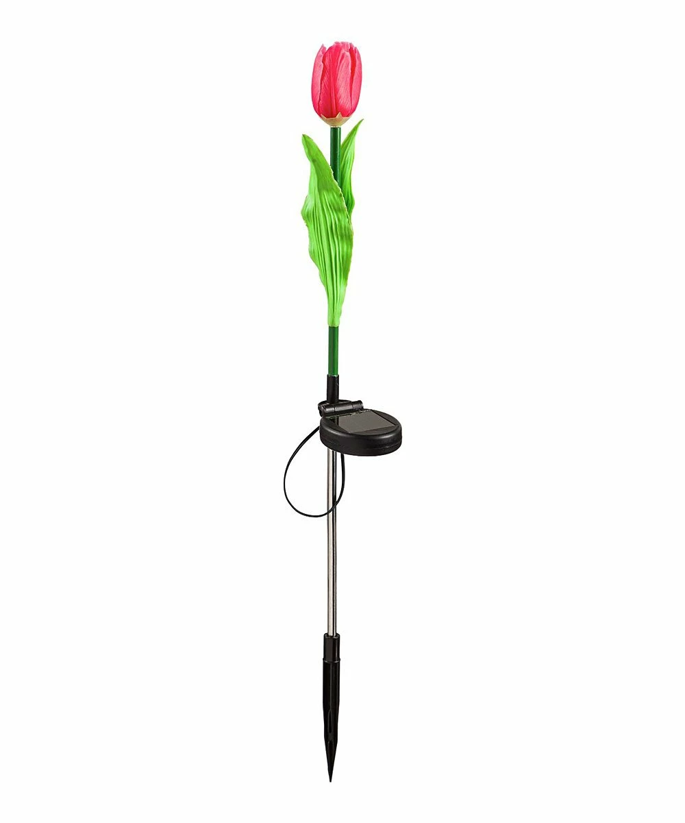 This solar garden stake puts some extra sun-catching color into your green space for cheerful floral decor that illuminates even into the twilight.