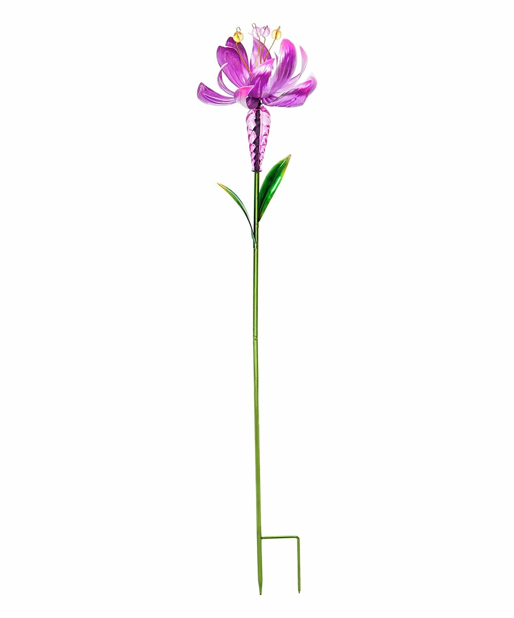 Enliven your outdoor aesthetic with this colorful garden stake featuring a floral design that spins in the wind.
