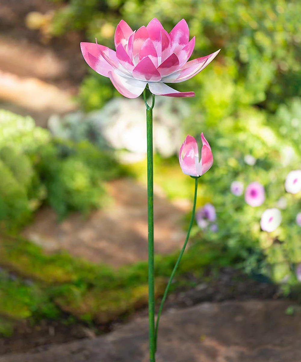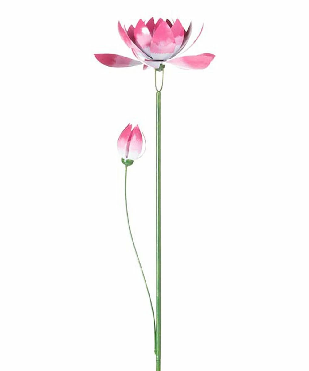 Decorate garden areas or front yards with this stake of a lotus flower. Kinetic design creates a spinning display.