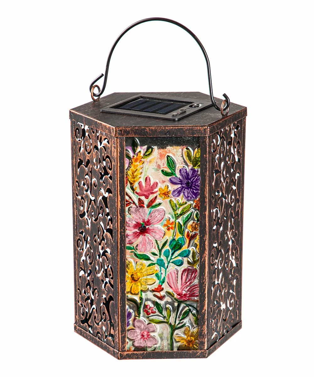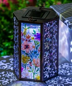 Add a gorgeous accent to your lawn or outdoor space with this gorgeous hand-painted solar lantern.