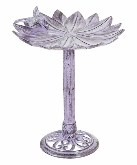 Give flying friends a place to relax with this birdbath boasting an intricate metal design.