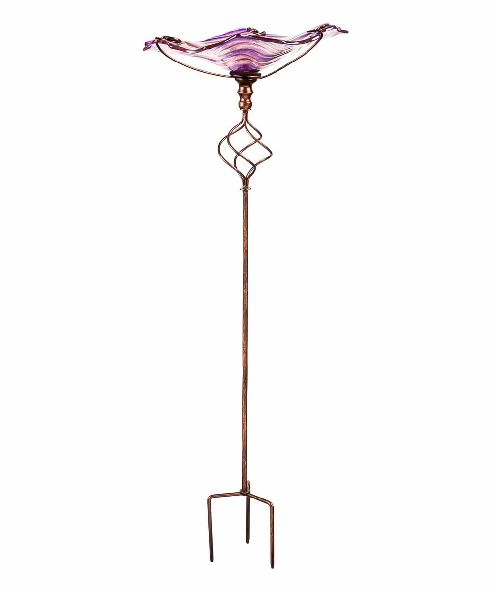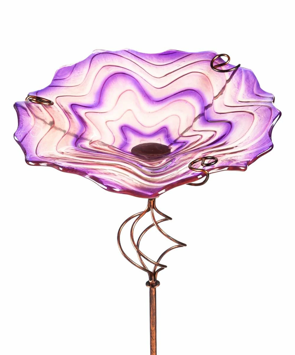 - Includes purple swirl birdbath and garden stake (two pieces total)
