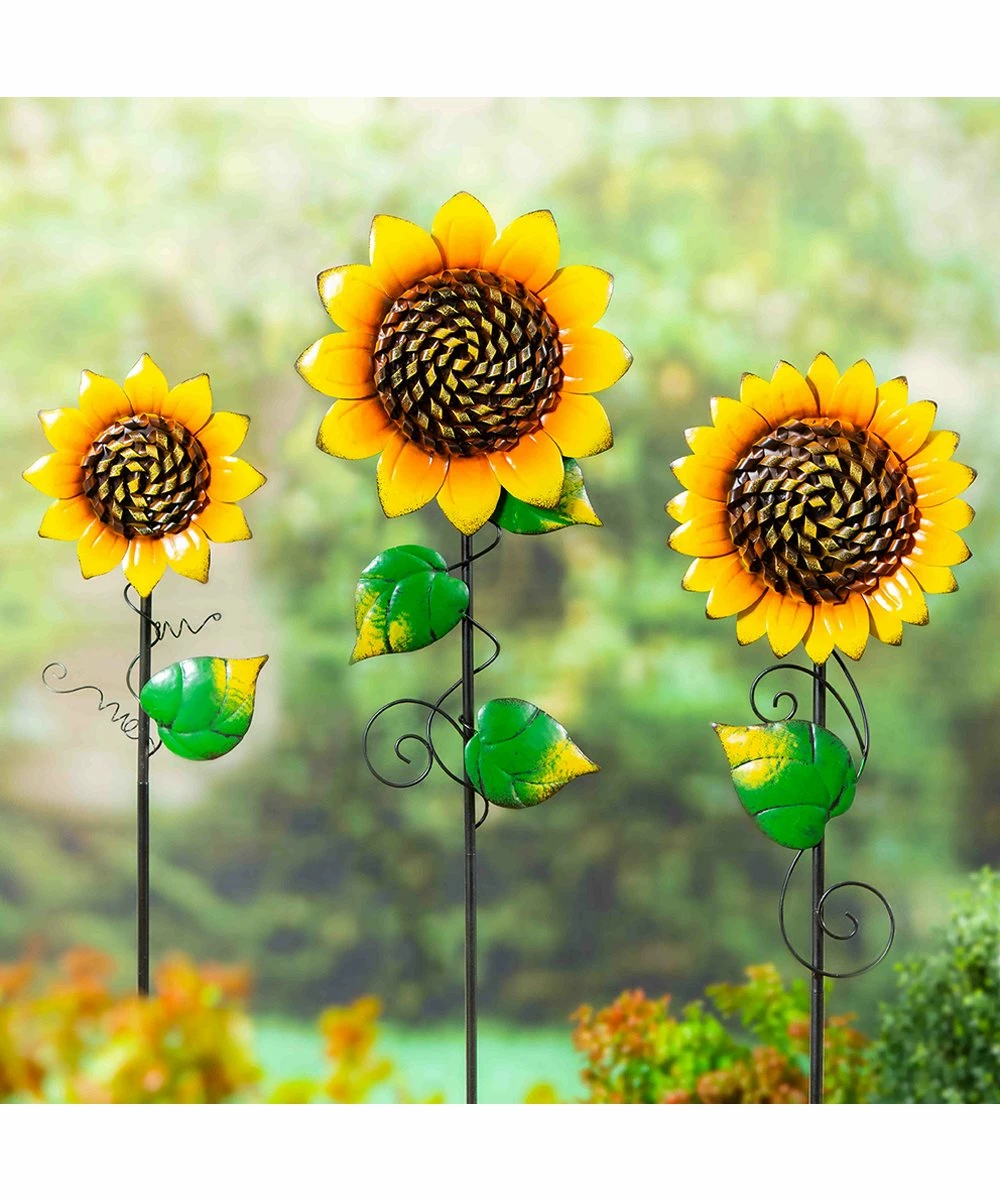 Add a Spring-friendly flair to your garden all-year round with this set of colorful sunflower stakes.