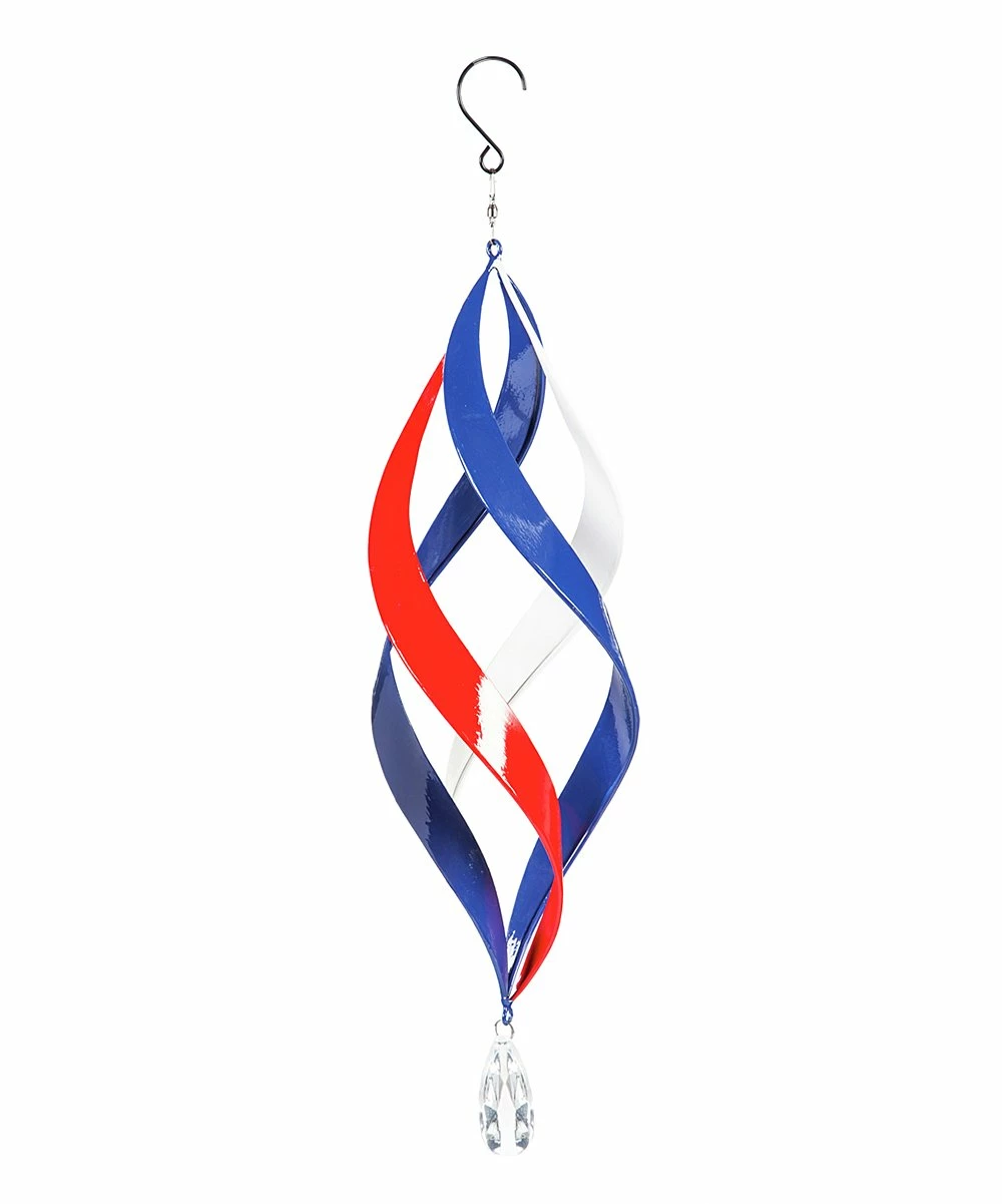 Create an eye-catching arrangement by hanging this wind spinner boasting a vibrant design that shimmers whenever a breeze blows by.