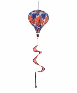 Add a festive spirit to your home’s outdoor space with this spinning hot air balloon mobile that features a patriotic Americana design.