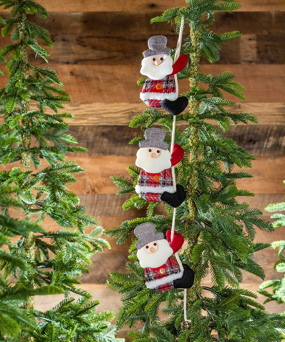 Bring a whimsical touch to your festive dΓ©cor with this ornament that features climbing Santas.