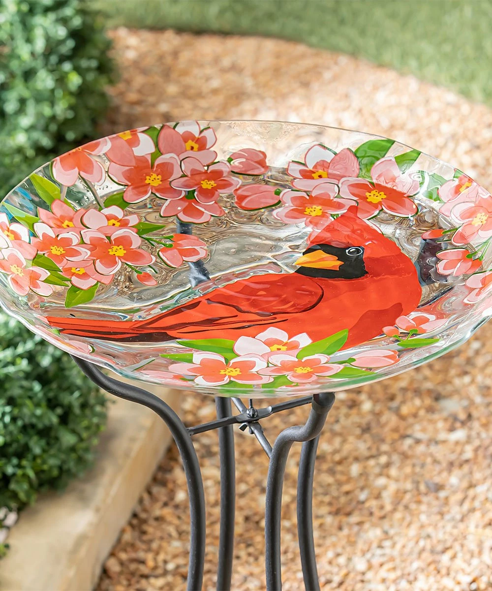 Bright color and bold design make up this unique and eye-catching bird bath bowl.