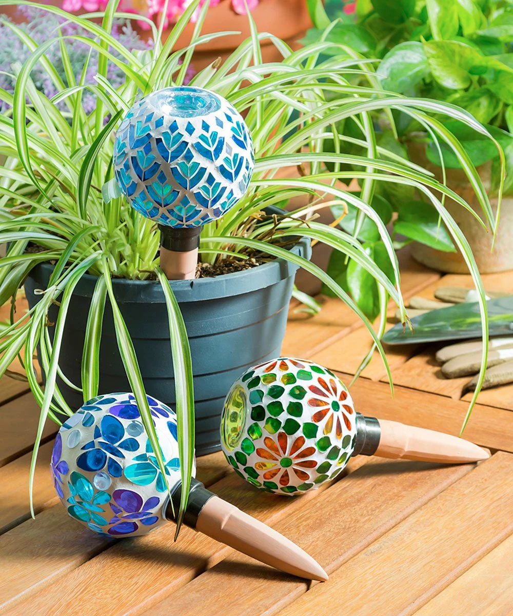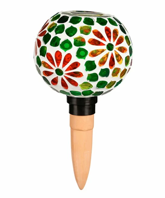 Embellish thirsty plants with this watering globe embellished with a mosaic glass top and a terra-cotta spike.