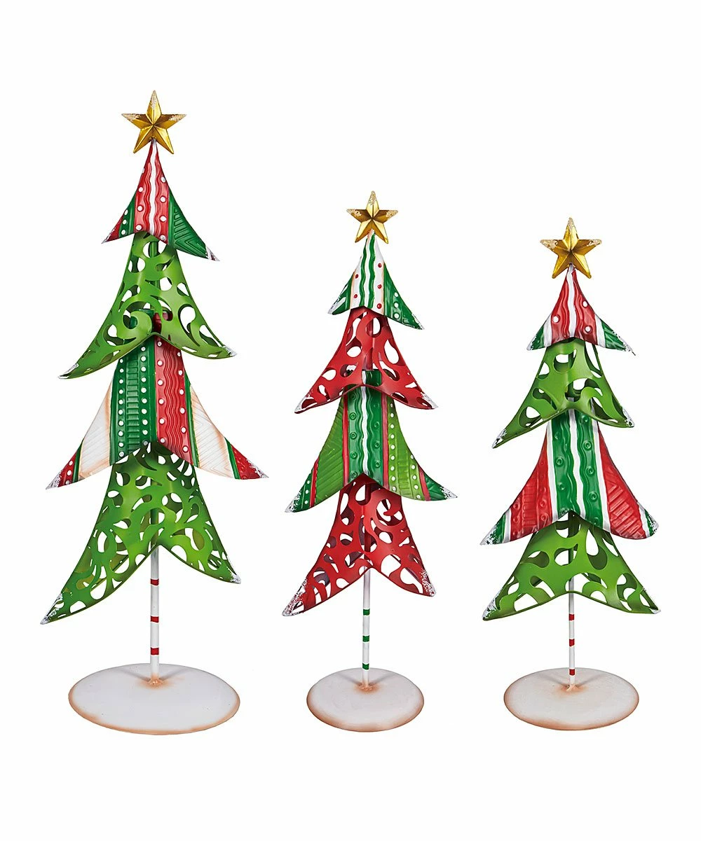 - Includes one small, one medium and one large red and green tree statue (three pieces total)