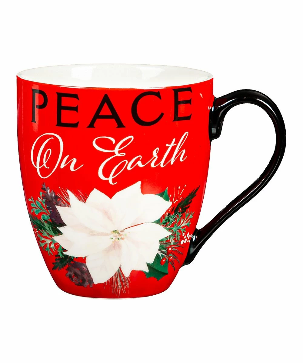 Cozy up in the mornings with this mug featuring a floral print and a festive message.