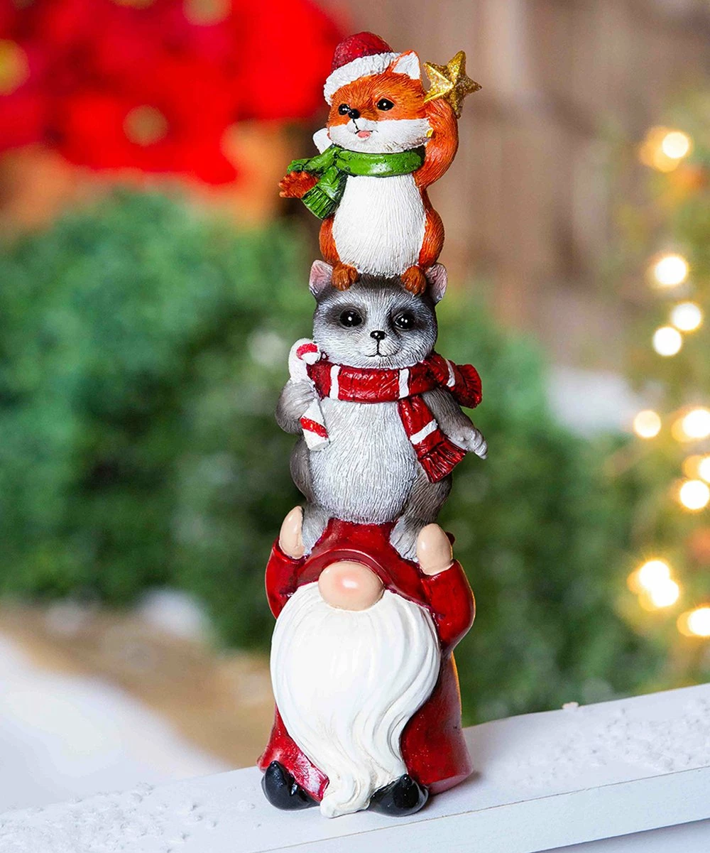 Bring on the festive fun with this holiday friends figurine in a delightful holiday motif.